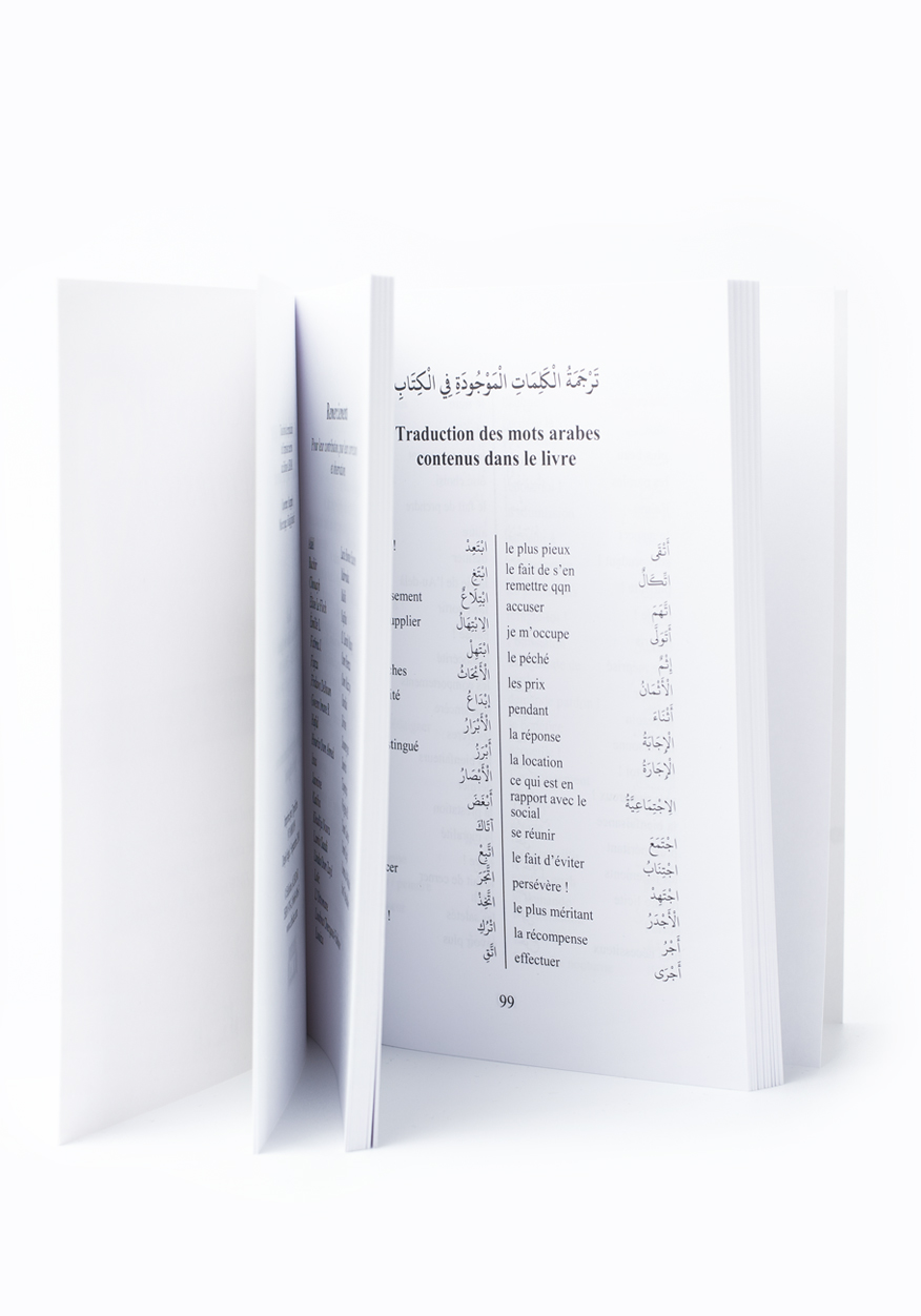 – et un tableau de l’ensemble des mots arabes rencontrés dans le texte, tous traduits en français.