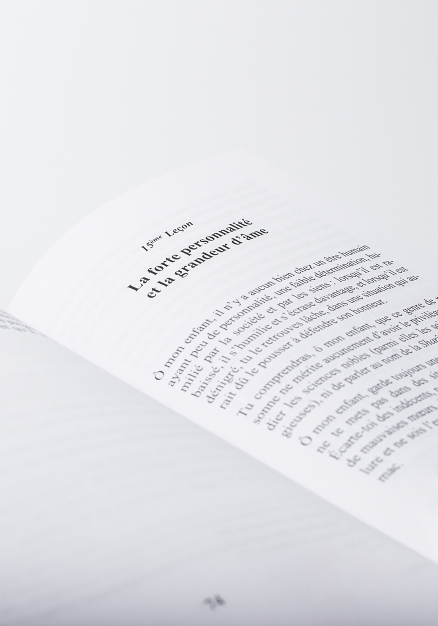 Plus de 137 conseils débutant tous par « Ô mon enfant » sont à méditer et à mettre en pratique. Des conseils en or qui vous pareront de la plus belle des parures, du plus beau comportement !